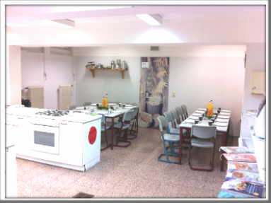 Eßbereich der Lehrküche                                                                Wir backen Brot wie die Profis...
